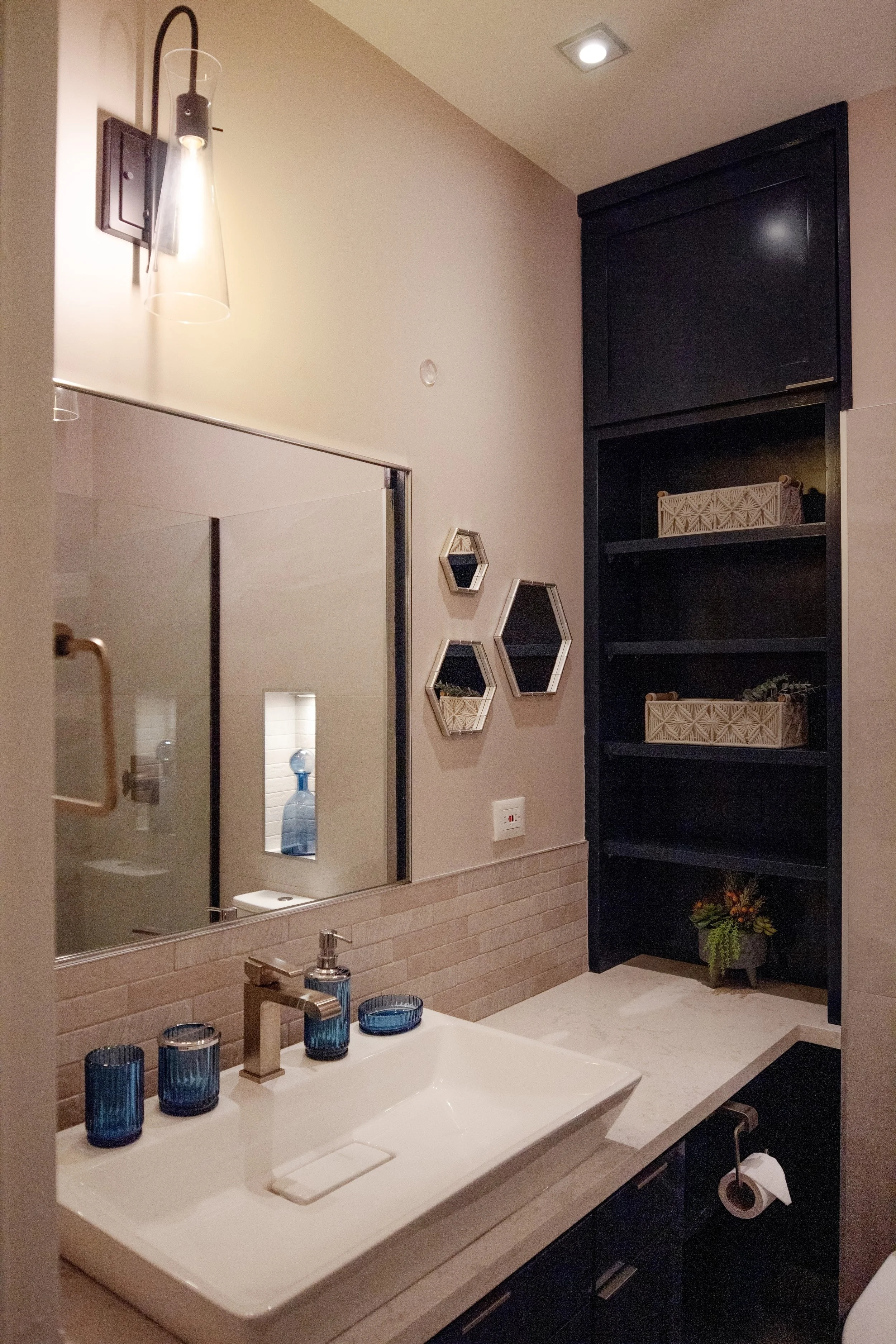 ALPACA BEDROOM SUITEA remodeled master suite featuring a contemporary design style with generous task lighting, adequate storage spaces, also sound privacy from the adjacent guest bath.